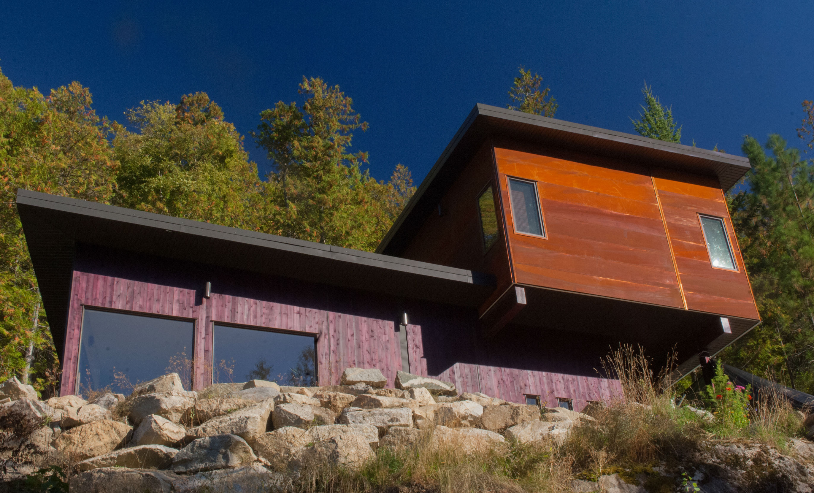 Again working with Studio 9 Architecture, Ax Construction implemended challenging design elements such as the stunning built up roofing system, metal siding, and tetris window wall ....